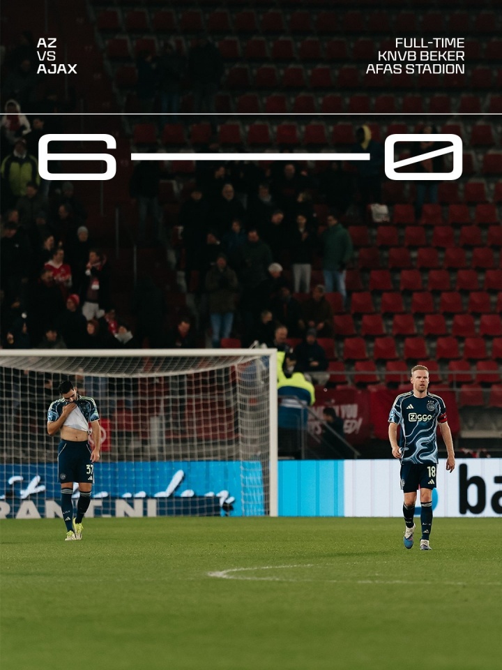 1月16日讯 在第3轮荷兰杯比赛,阿贾克斯客场0-6惨败给阿尔克马尔,创造队史在荷兰杯的最大比分失利。赛后阿贾克斯球员和教练都进行了自我批评,并表示应该给球迷退票。