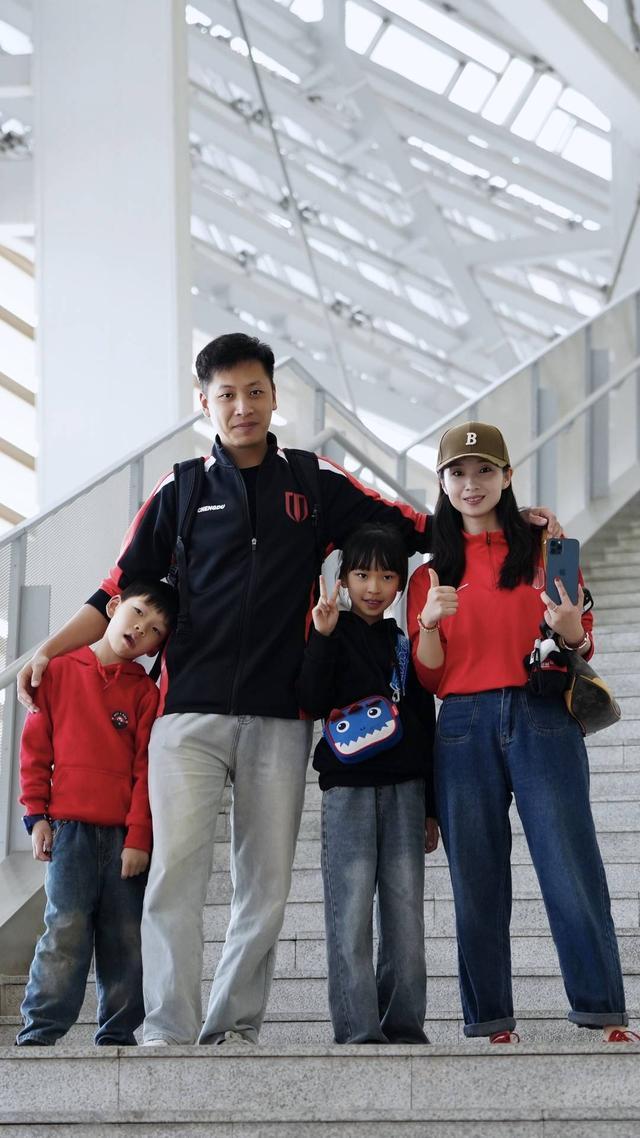 白芸与老公孩子一起看球。受访者供图