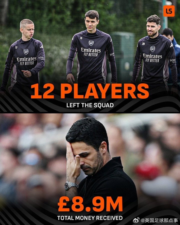 LiveScore:阿森纳在今夏放走了12名球员,但转会收入却不到900万英镑😵💫